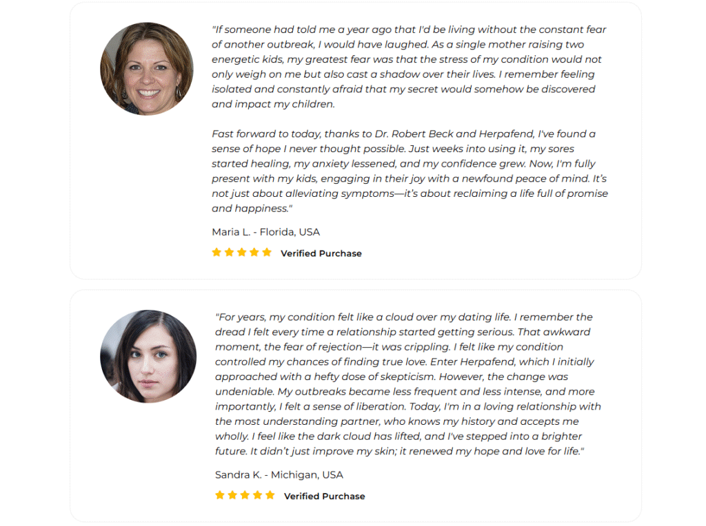 If you’re tired of the limitations that outbreaks cause and are looking for a real, lasting alternative, Herpafend is absolutely worth it. And with the 60-day money-back guarantee, your purchase is completely risk-free — you either see results or get your investment back.